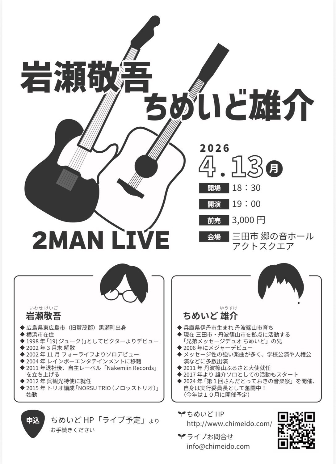 4/13(月)岩瀬敬吾×ちめいど雄介2マン