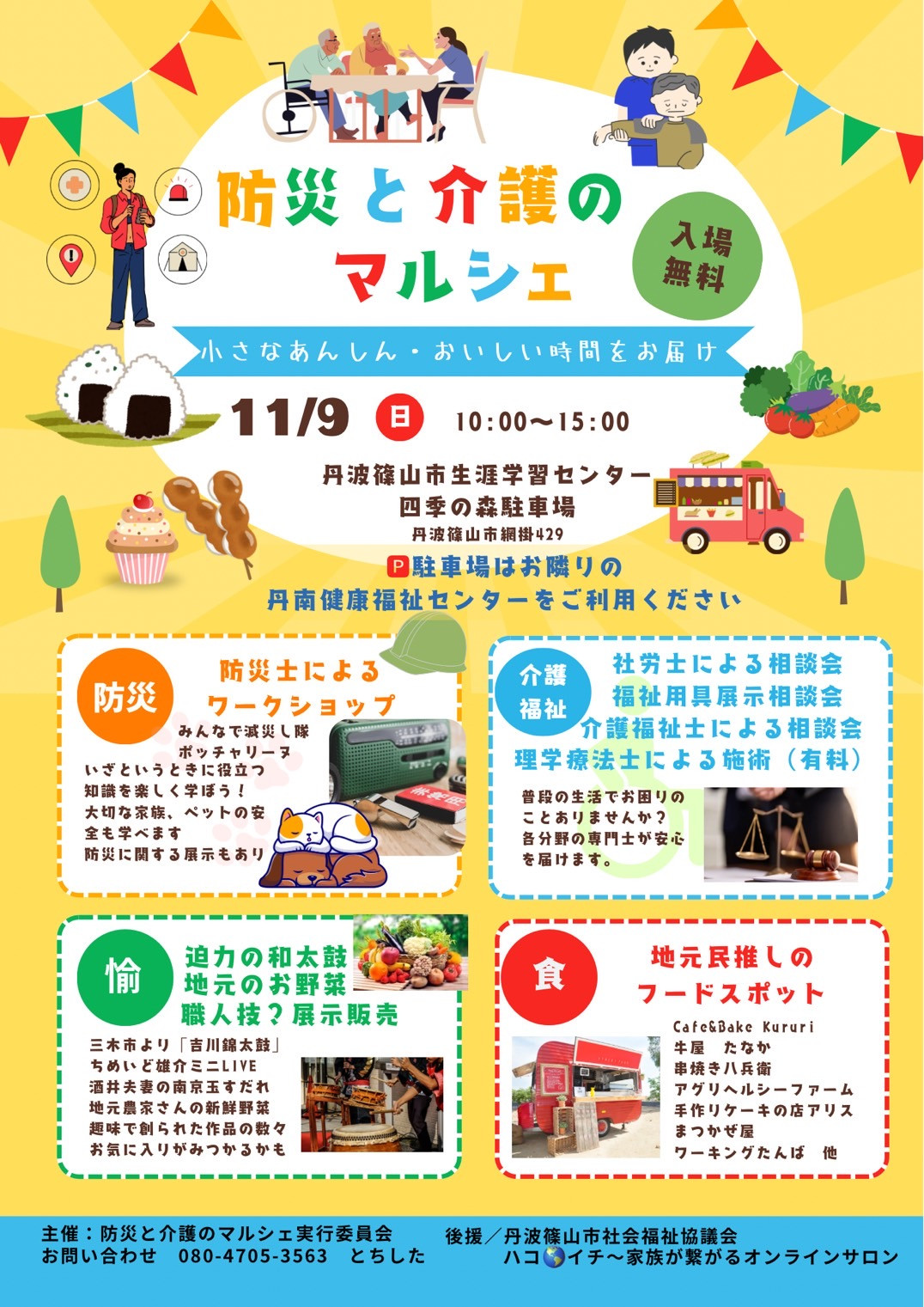 11/9(日)10:00ちめいど雄介出演 防災と介護のマルシェ 四季の森