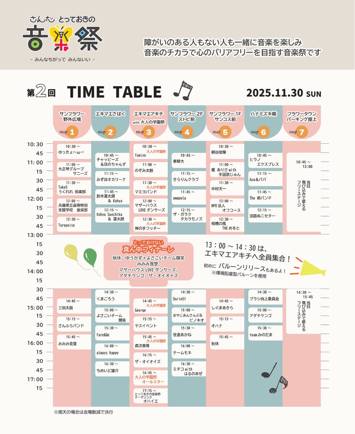 第2回さんだとっておきの音楽祭 会場マップ&タイムテーブル